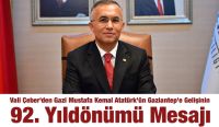 Gaziantep Valisi Kemal Çeber, Gazi Mustafa Kemal Atatürk’ün Gaziantep’e Gelişinin 92. Yıldönümü dolayısıyla bir mesaj yayımladı.